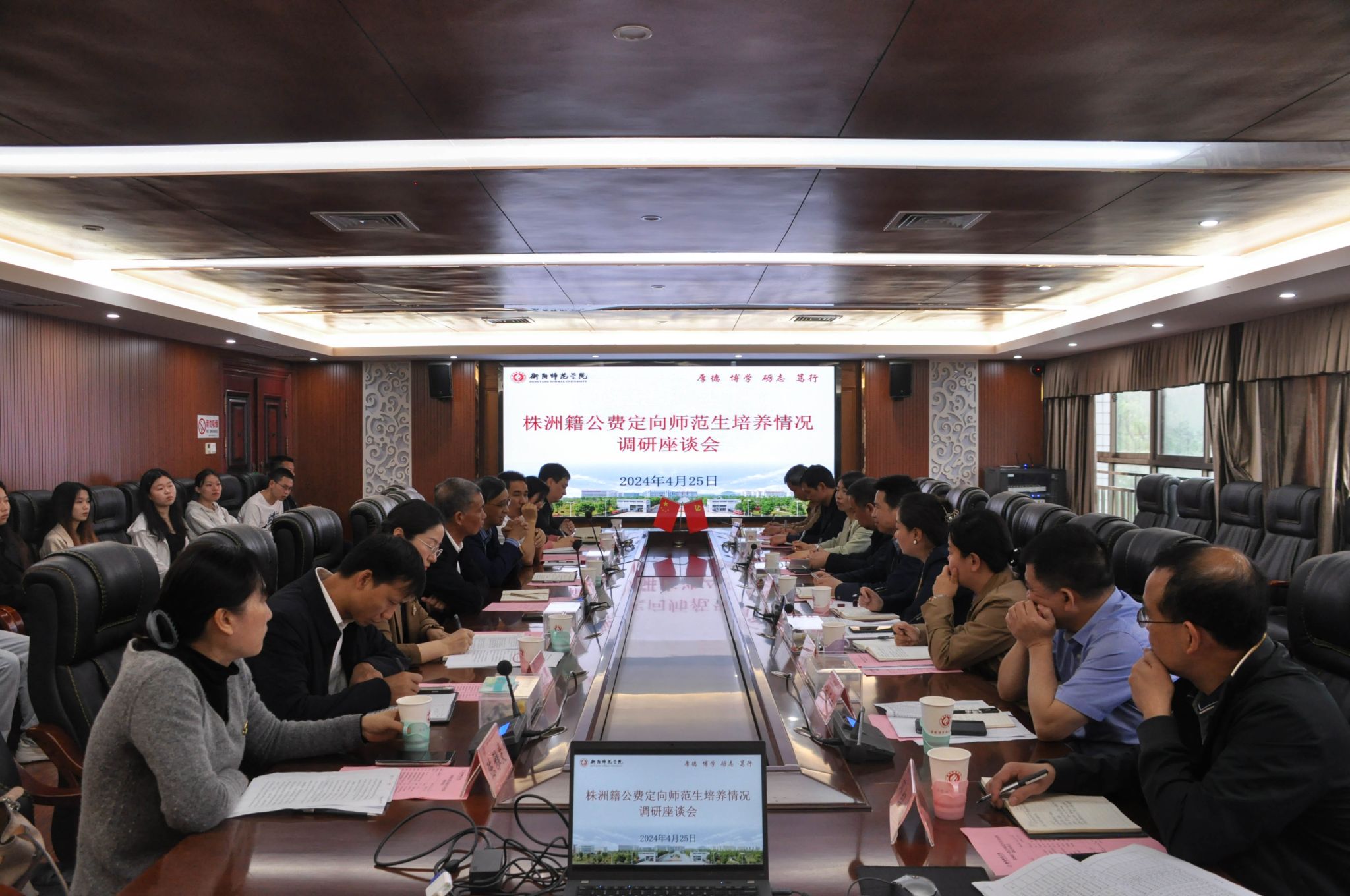 4月25日上午,株洲市教育局党委委员、副局长罗裔一行9人来我校调研公费定向师范生培养情况。学校在东校区行政楼二会议室召开调研座谈会,副校长刘俊学主持座谈会。教务处、学生工作部、招生与就业指导等部门和学院负责人以及公费定向师范生学生代表参加会议。
