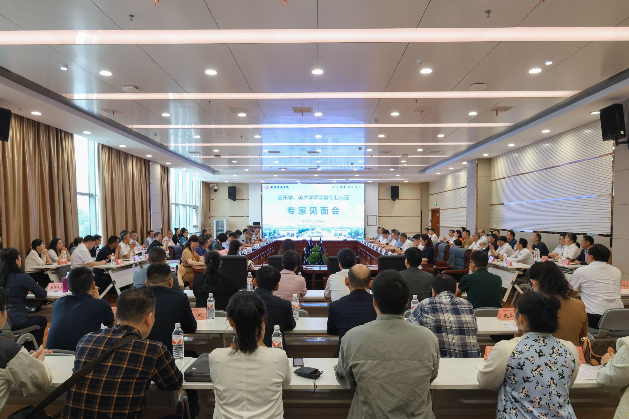 5月9日,音乐学、美术学师范类专业认证专家见面会在东校区图书馆213会议室举行。联合认证专家组组长兼音乐学专业专家组组长、西安文理学院教授韩权,美术学专业专家组组长、华中师范大学教授洪早清一行14人出席见面会。省教育厅教师工作与师范教育处副处长缪高勇,我校全体在家校领导、党委委员出席。会议由韩权主持。