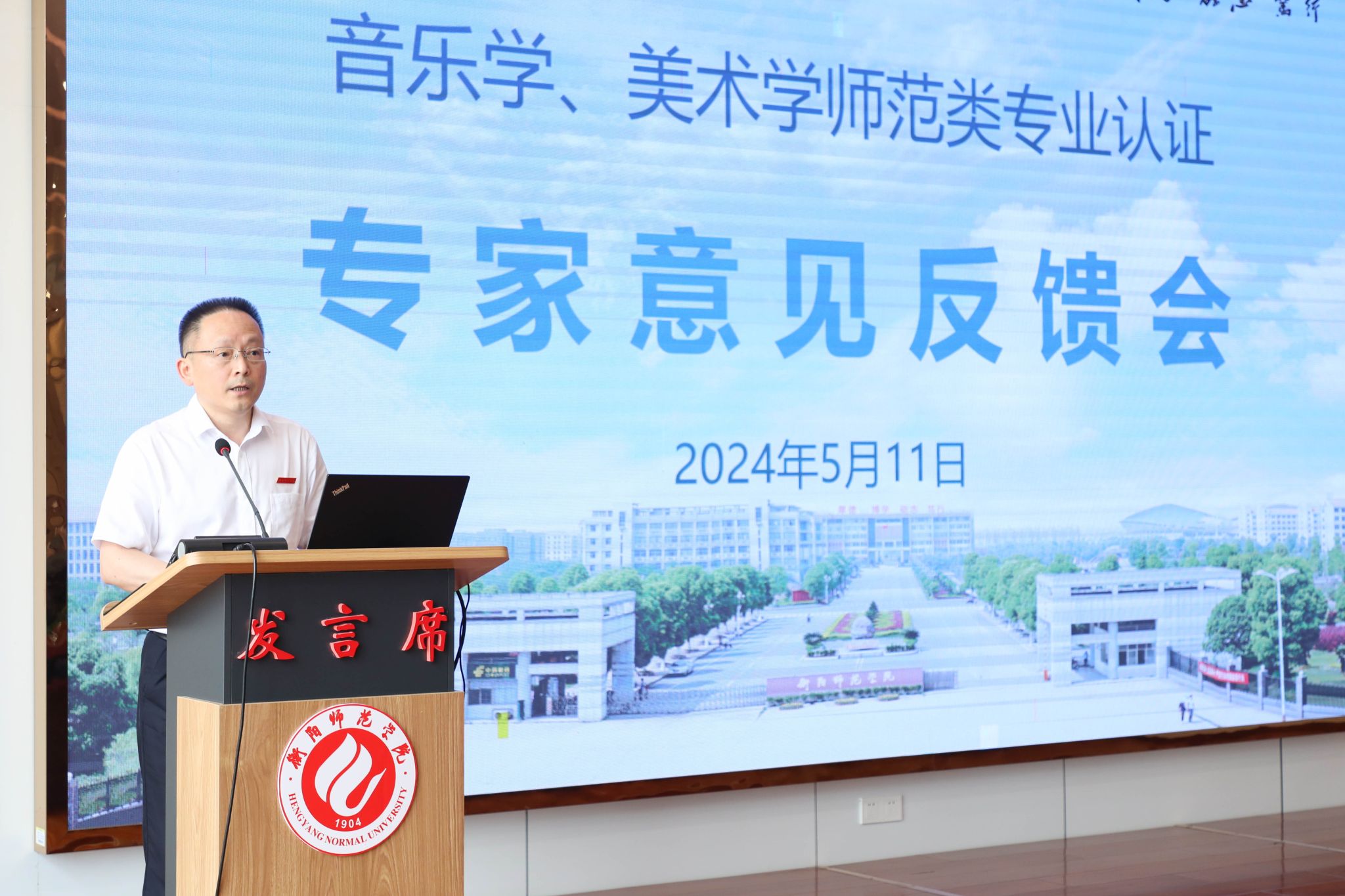 反馈会上,韩权作为联合认证专家组组长介绍了本次认证考查的整体情况。他指出,音乐学、美术学专业始终坚持党的教育方针和社会主义教育方向,以立德树人为根本任务,坚持师范教育初心,坚持服务基础教育,初步形成了以强素质为核心,融入红色文化的人才培养特色,为湖南省及周边区域培养了一大批综合素养较高的地方骨干教师,为地方基础教育发展作出重要贡献。韩权、洪早清分别代表音乐学、美术学认证专家组对认证考查的整体情况进行反馈。随后,专家组成员依次发言,分别从培养目标、毕业要求,课程与教学、合作与实践、质量保障等方面作出意见反馈,指出了专业人才培养存在的若干问题,并提出了相应的改进建议。