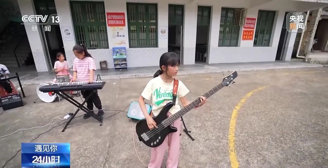 五月时节,阳光照进群山环抱的湖南衡阳县岣嵝乡妙溪小学,音乐教室里传来欢快的乐曲演奏声。几个孩子正在练习贝斯、电子琴和架子鼓,为他们的演出认真做准备。